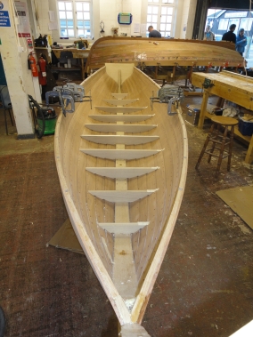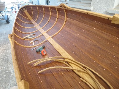 Ab der 5. Planke werden die Bodenwrangen mit eingebaut, da jetzt noch ein besserer Zugang gewährleistet ist.
